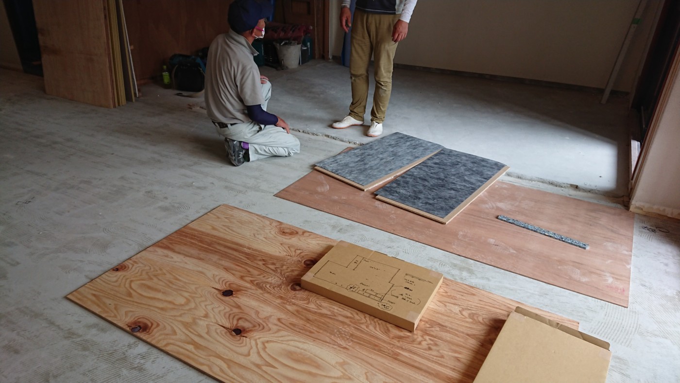 - 好みの無垢の床材を採用して、それとは別に遮音材を事前に施工する。
