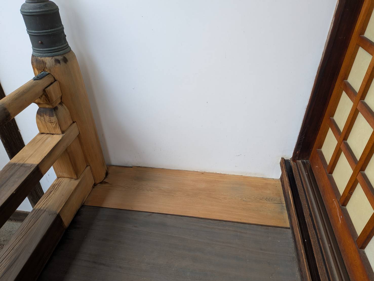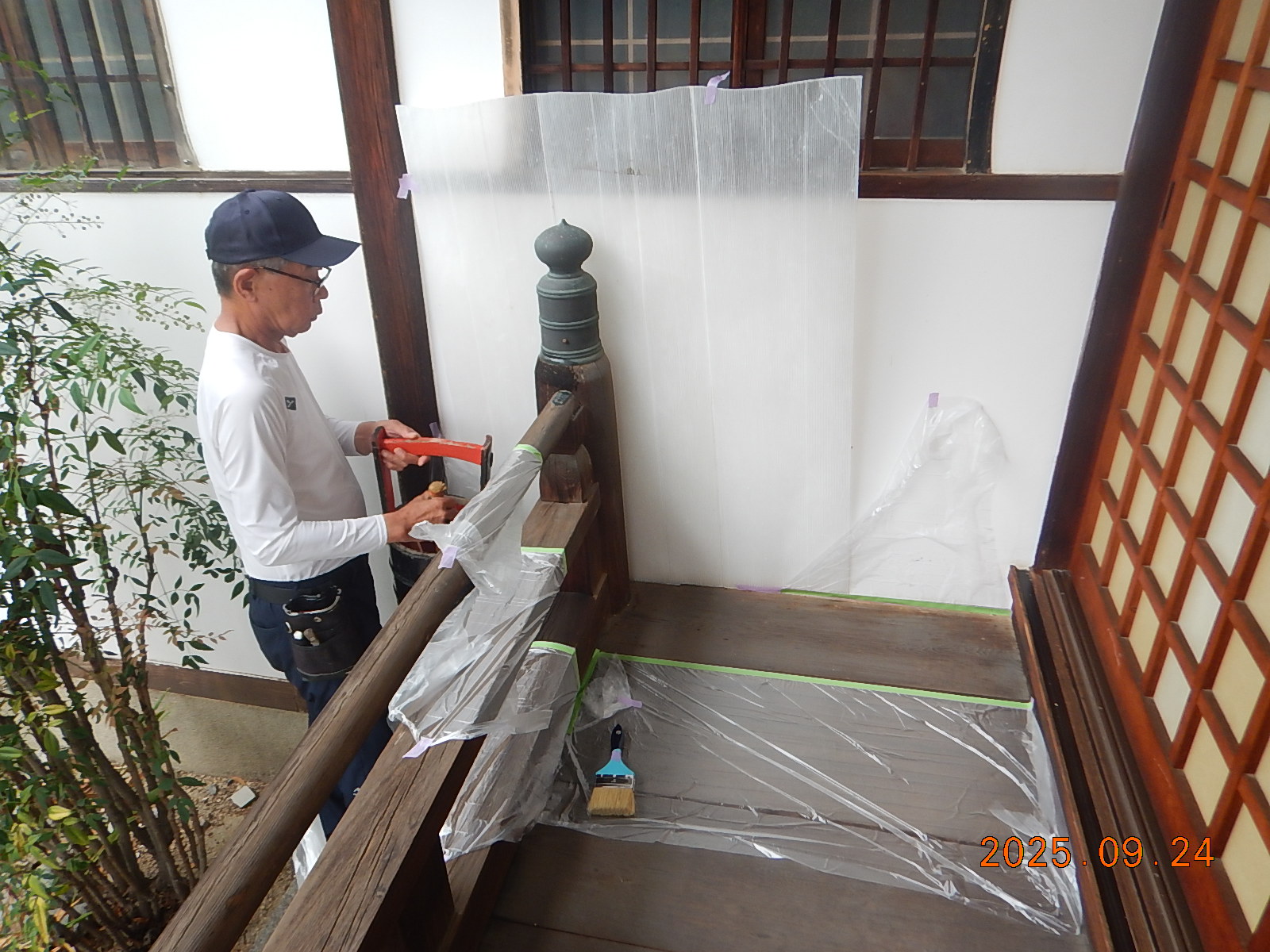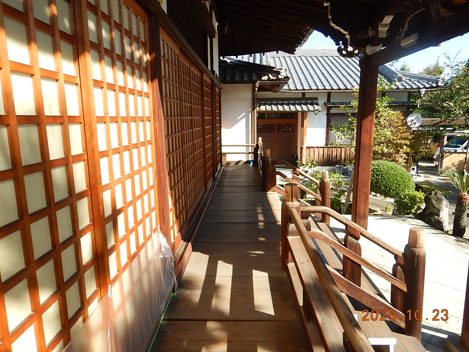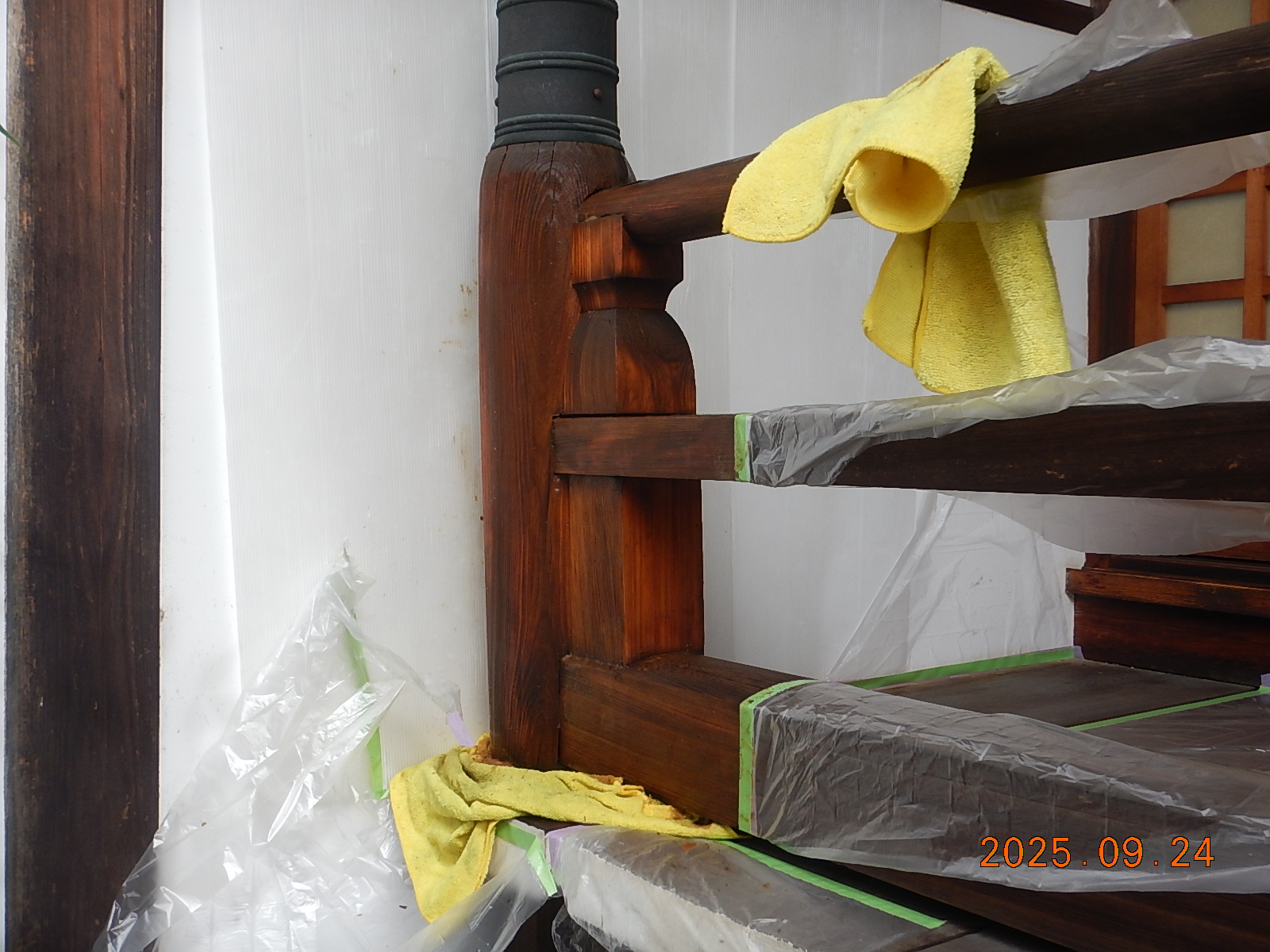 先日は、工事範囲とはエリアの異なる本堂側の回廊の「木部洗い試験」を実施させて頂きました!